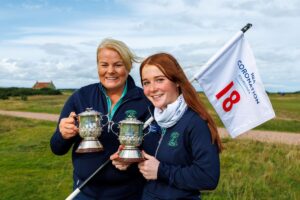 Kirkistown Castle's Beth Coulter helped her side to a 266 (-22) total in the second round, the lowest 18-hole score vs. par in program history.