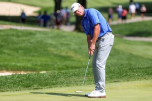 “Aren’t we there? I’d have thought we were past there,” Montgomerie said of Woods’s ability to win. “There is a time for all sportsmen to say goodbye but it’s very difficult to tell Tiger it’s time to go. Obviously, he still feels he can win. We are more realistic.”