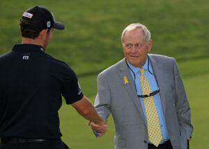 Nicklaus has his right hand outstretched, what do you do?