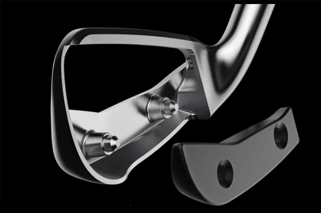 To improve overall feel, a Polymer Feel System is incorporated using an injected polymer filler that encases the hollow area around the PWR-BRIDGE weight to damp vibration for a soft, forged-like feel and sound at impact.