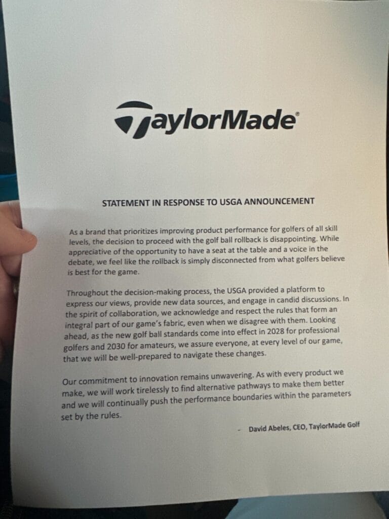 TaylorMade, one of the leading original equipment manufacturers in golf, have issued a statement in response to the R&A and USGA’s joint announcement that new rule changes were being implemented that would see new specifications required for golf balls which will decrease the distance a ball flies.