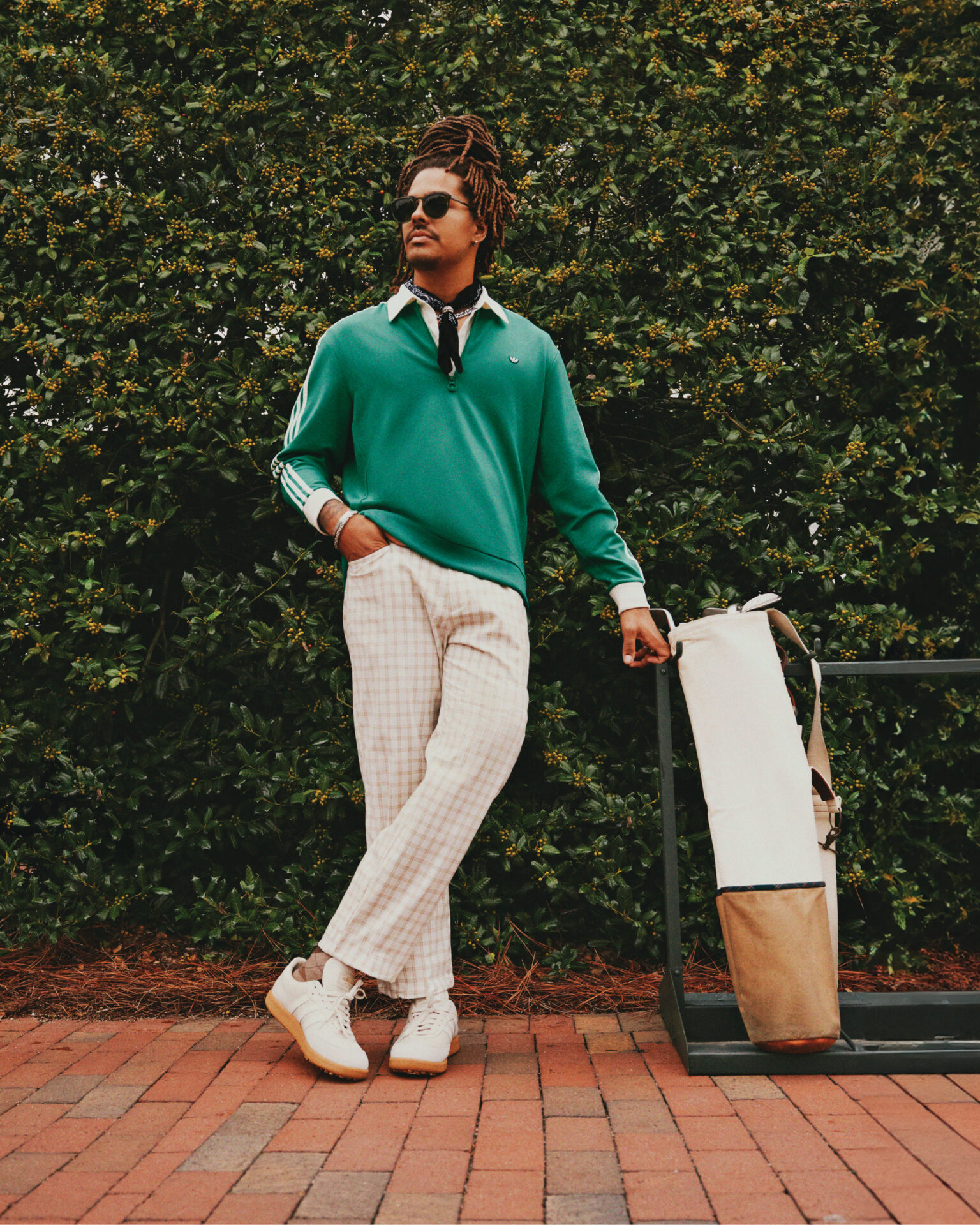 The range will also feature a Solid Polo with 3-button placket and contrast color tipping in the collar; an Originals Archive Pocket Polo that’s mercerized to make the cotton fabric more lustrous and brighter in color; a pleated pant with sewn-on 3-Stripe detail and our Originals Archive Plaid Pant that features a center fold press inspired by the icons of the past.