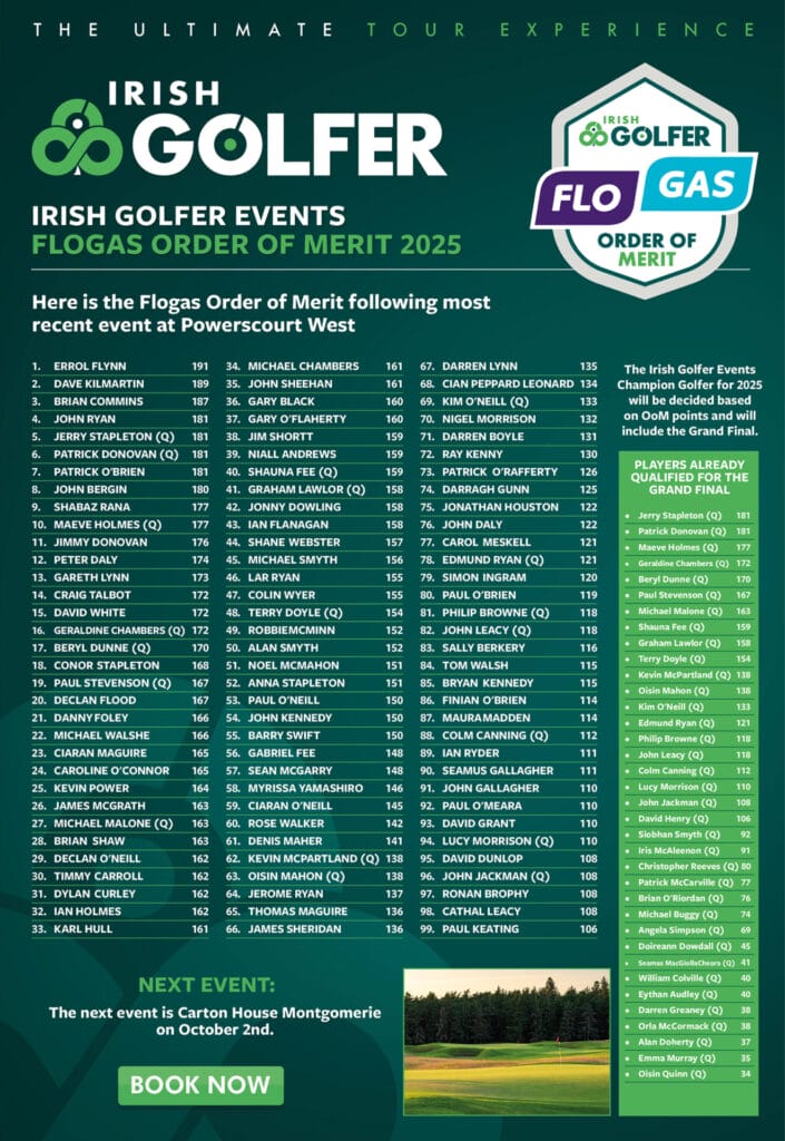 The Flogas Order of Merit for the Irish Golfer Events Series 2025 is now updated following the most recent event at Powerscourt Golf Club – West Course.