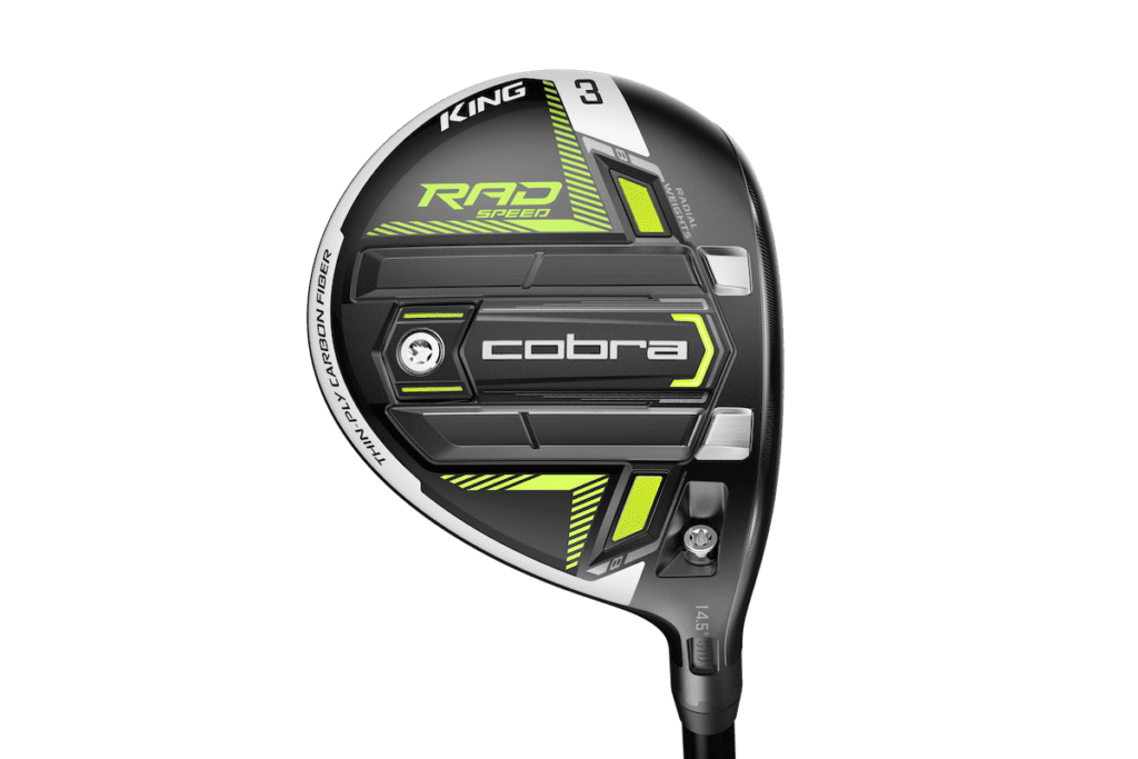 - RADSPEED DRAW Fairway – features 16g of heel-biased internal Radial Weighting a 7g weight in the back to create draw-bias and medium-to-high ball flights, forgiveness and maximum slice correction power. A CNC Milled Infinity Face is also included, delivering precision and increasing the zone of maximum ball speed. Available in Gloss Black with Turbo Yellow colourway and a Project X Even Flow Riptide shaft (Stiff, Reg, and Lite).
