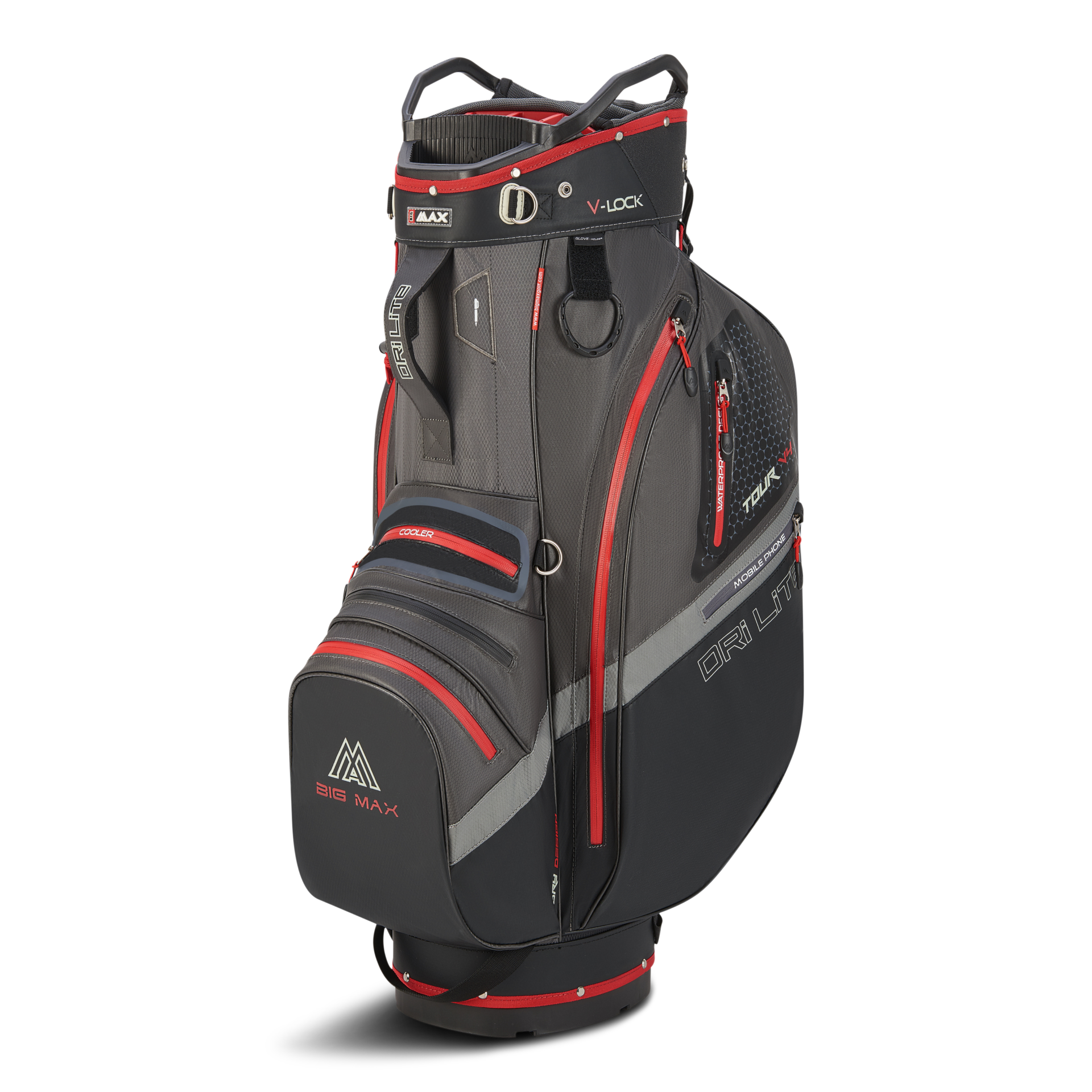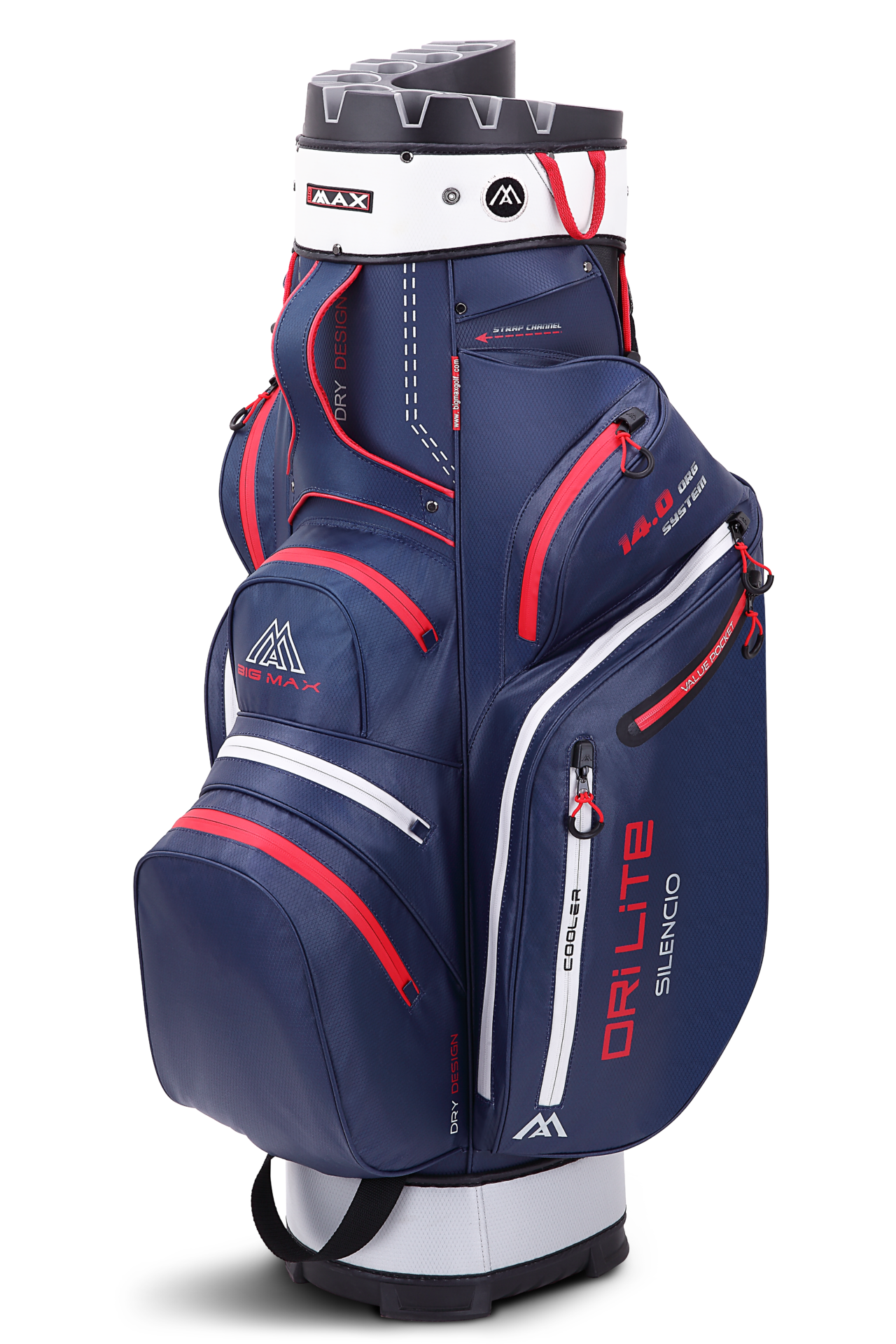 The Dri Lite V-4 features the BIG MAX V-LOCK Organiser that locks the top row of clubs in place. With a simple turn & lock action, Woods – and their large head covers – lock in place, and the golfer who wants their clubs neat and tidy gets the clear view that they want. Add in 9 spacious pockets – including 2 cooler pockets and a 100% waterproof valuables pocket, plus 14 full length dividers, dedicated oversize putter well and glove, umbrella and towel holder, this really is the bag where everything has its place.