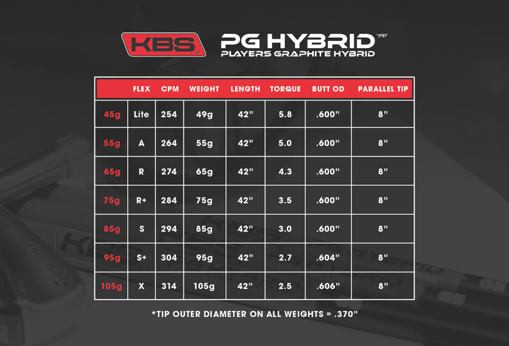 Based on its proven Players Graphite Iron platform and family, KBS sees the PGH shaft delivering tangible performance benefits and features that enable playability beyond the universal standard for traditional graphite hybrid shafts.