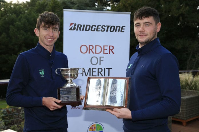 Tom McKibbin from Holywood Golf Club in Belfast and Naas Golf Club’s Robert Brazill picked up their respective Bridgestone Order of Merit trophies last weekend after stellar seasons rewarded them with top spots in the Series.
