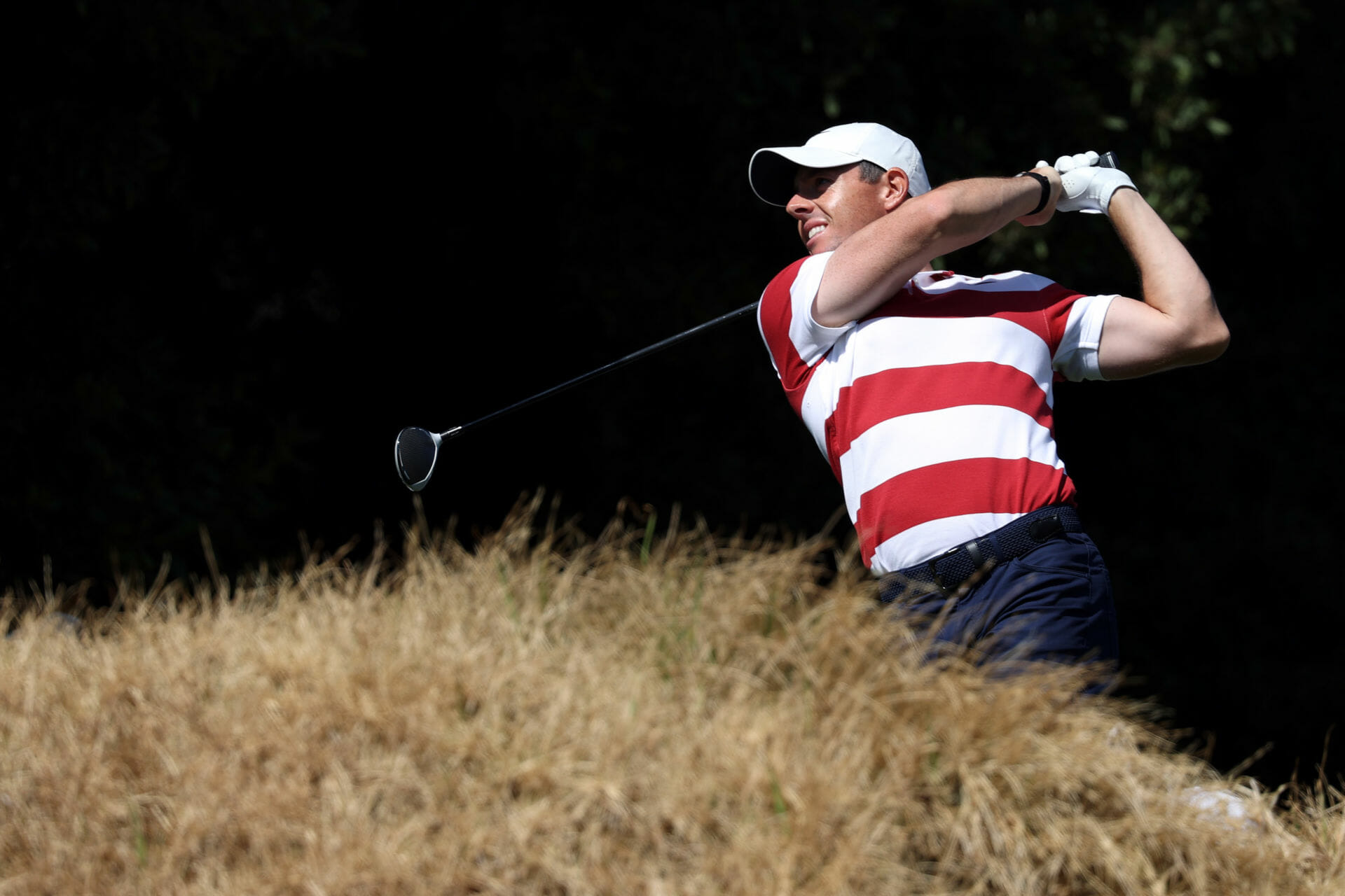 McIlroy teed-up on day two sporting a shirt looking more akin to a rugby top or a copy of the Nike sponsored USA Men’s Soccer team.