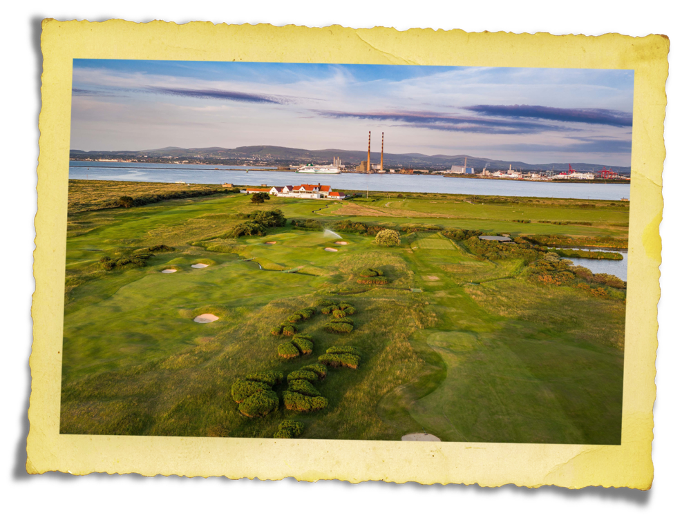 The Poolbeg chimneys in Dublin stand over 200 metres above the city, visible from everywhere and from over a dozen golf courses. Built in 1971, and de-commissioned in 2010 (they were granted protected structure status in 2014), the two red and white striped towers are eye-catching from miles around… most particularly on Bull Island, home to Royal Dublin and St Anne’s golf clubs. If you play a round at either club and you are accompanied by a member, don’t be surprised if the two towers are suggested as your ideal line, time and again.