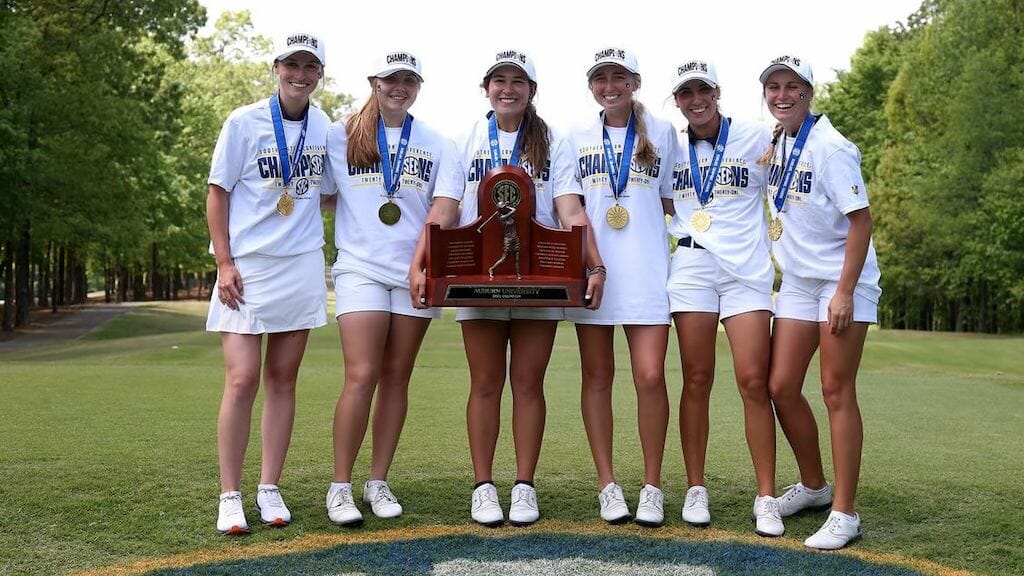 The victory caps a week at the SEC Championship where Auburn finished third in stroke play at 25-under and then won matches against Vanderbilt and Alabama in the quarterfinals and semifinals before taking down Mississippi State in the final.