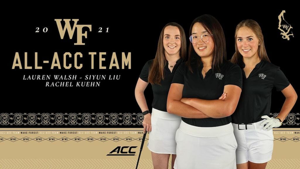 Senior Siyun Liu and sophomores Rachel Kuehn and Walsh earned the honour off the back of a third-place finish at the ACC Championships in Greensboro two weeks ago where Kuehn was the third-place medallist. Liu finished three strokes behind Kuehn in fifth place and Walsh finished in a tie for 11th.