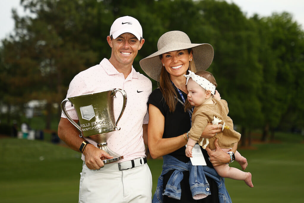 Waiting for McIlroy at the back of the 18th was his wife, Erica and daughter, Poppy with the occasion also being McIlroy’s first win since she was born late last August with Rory clearly delighted to plant not one but two kisses on Poppy’s cheek.