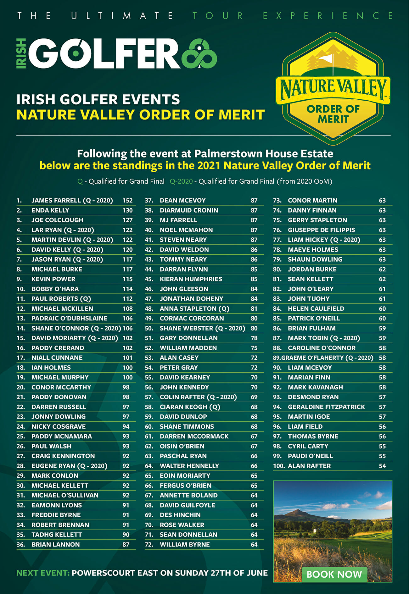 As ever, your four best scores across the season count towards the Order of Merit and the top 10 players not already qualified for the Grand Final will join us at The K Club to compete for the Champion Golfer 2020/21 title on The K Club Palmer North Course.