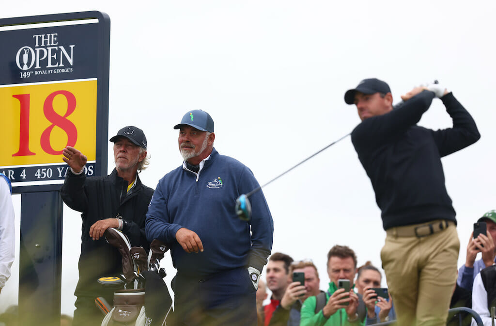 Just as they did a decade ago on the eve of the tournament at Royal St. George’s, Darren Clarke teed up with fellow Northern Irishman Rory McIlroy for a final practice round ahead of the opening day of The Open.