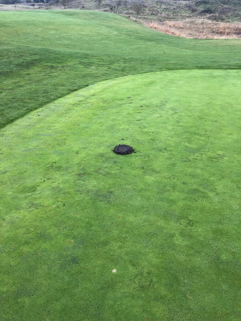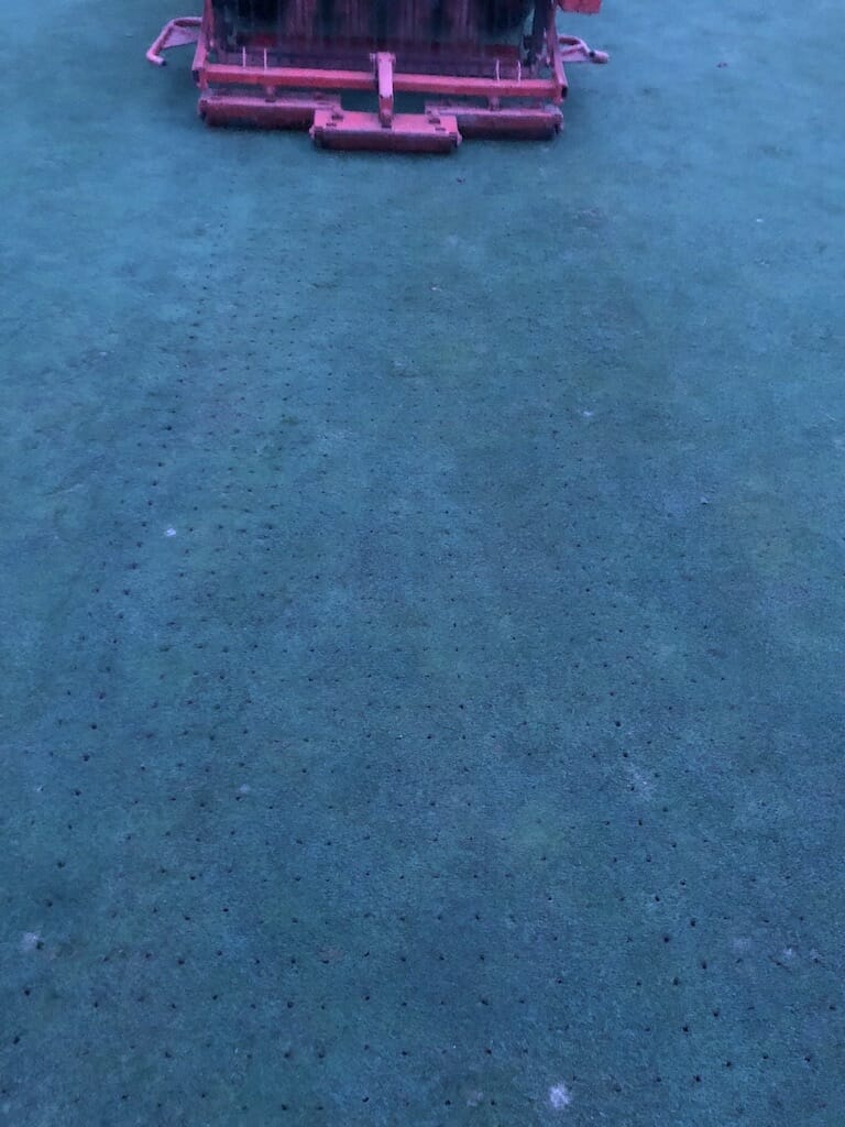 “The greens will fully recover,” Buckley says. “Obviously at this time of year recovery is a little slower anyway but I’ve no doubt they’ll be 100%. We spiked a couple of the more damaged ones this morning but they’ll be no worse or no better than what they were this time last week.