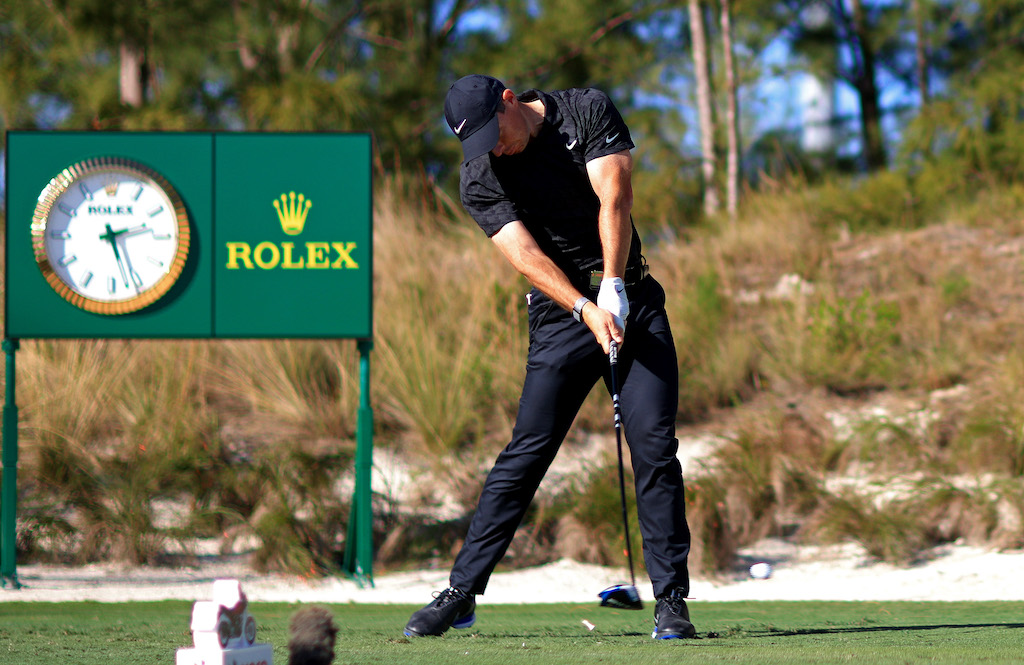 Rory McIlroy bounced back from his Dubai final round disappointment to jump straight back into contention with a share of the lead on the opening day of the Hero World Challenge in Albany, Bahamas.