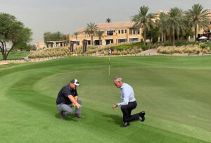 Quoting from a press release at the time it was Sean Kinsley, Director of Agronomy at the Emaar Hospitality Group, and his team who supervised the project’s progress saying that the desert surroundings on most holes were also cleaned-out and enhanced as part of the ambitious course improvement program. Then on the tail-end of the project, there was a major reshaping and returfing of the driving range along with returfing the practice putting green.