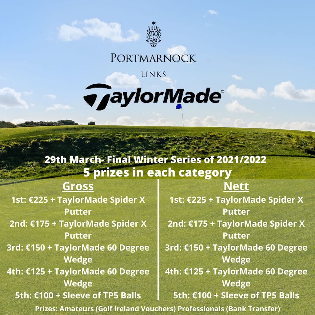 Portmarnock Links have 124 players booked in for next week with four remaining tee times: 12.10, 12.20 & 12.30 & 13.10. The season finale promises more prizes and is sure to finish on a high after a brilliant effort over winter.