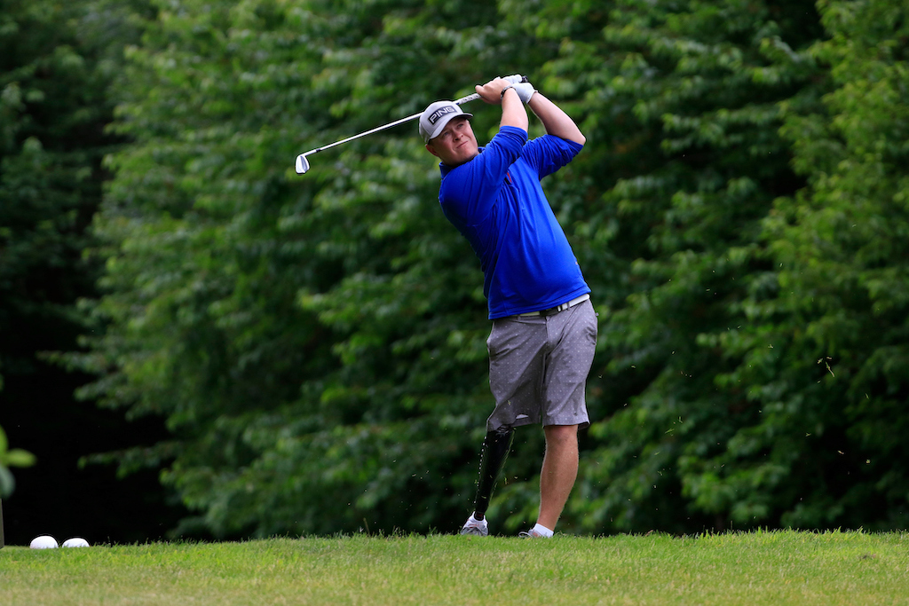Foyle’s Declan Burns leads the Stableford (Net) competition. The Stableford format is for players competing with a Handicap Index of 18.5 or higher. Burns is on 42 points, four clear of Paralympic legend Michael McKillop. The Cushendall golfer is on 38 points.