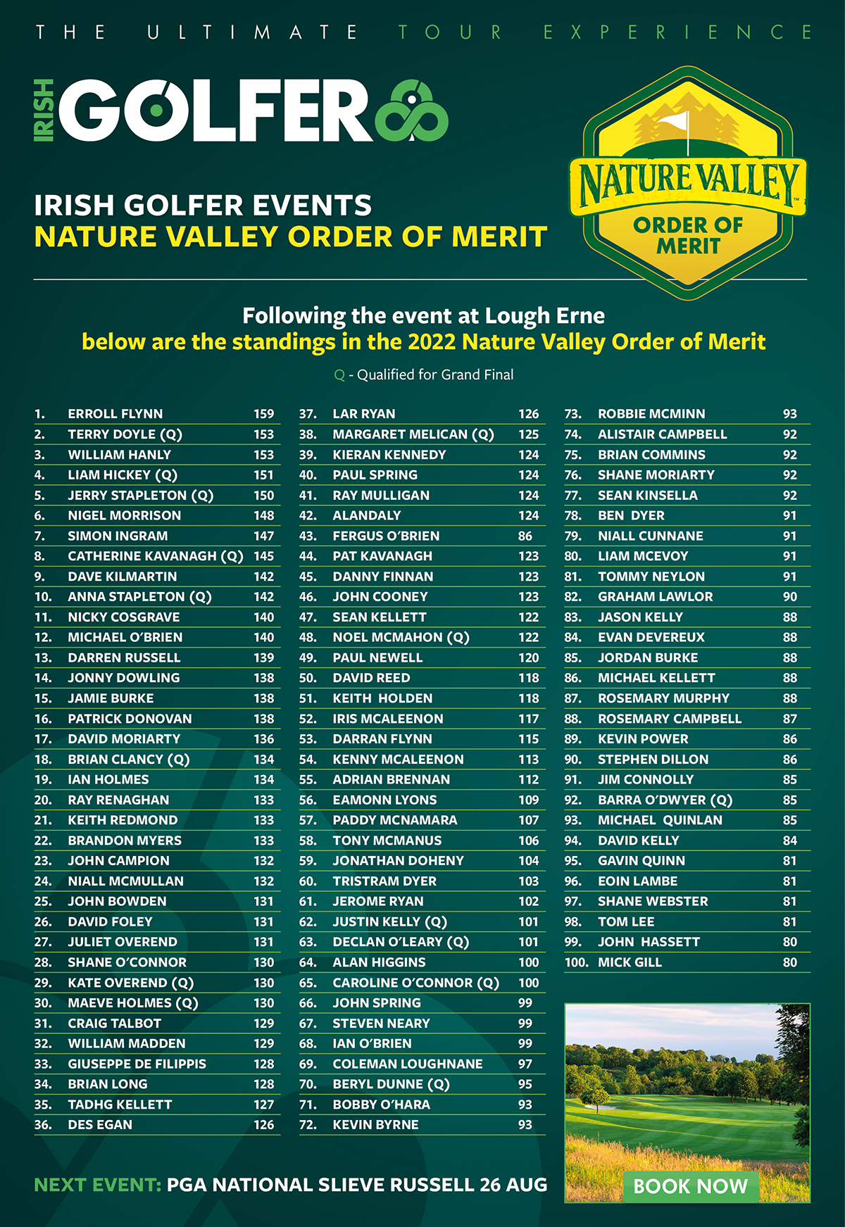 There are now only four events left in the Irish Golfer Event series for 2022 and your next opportunities to influence your position on the Nature Valley order of Merit and qualify for the Grand Final are coming in the next few weeks.
