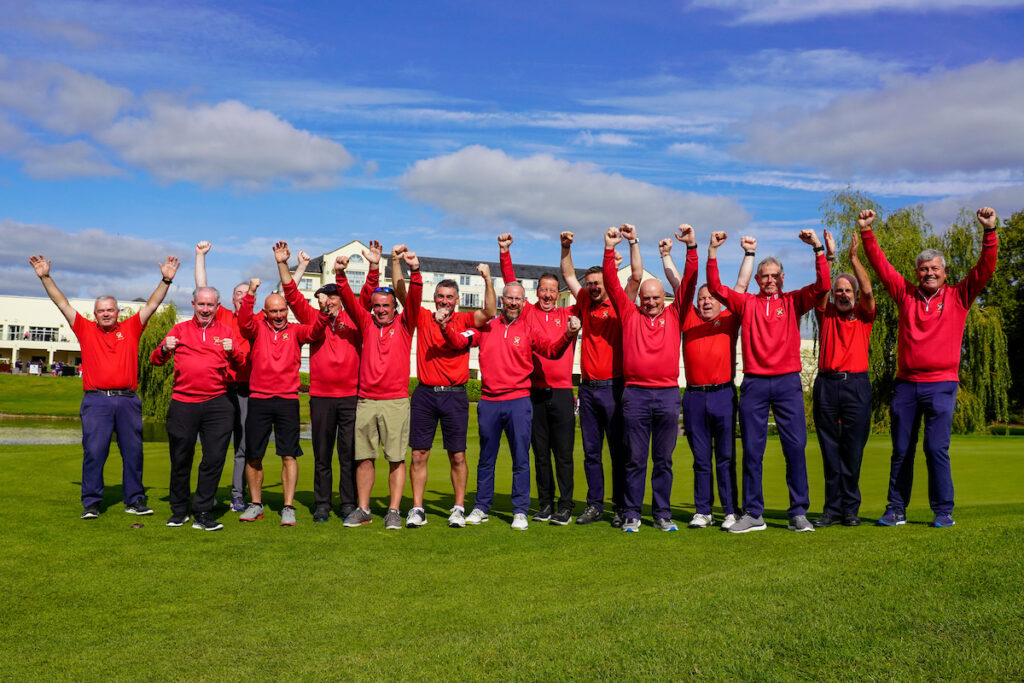 It was no coincidence that the opening match proved the closest, as Prendergast and Evans pointed out after holing the winning putt. “I got no putt all day,” said Prendergast, “and I missed a few tiddlers out there, but we knew they’d go out strong number one so the captains decided to put us up there and hope we got their best pairing and we knew if we took them out then we’d be champions and that’s the way it fell. Luckily enough we were one-up playing 18 and to sink the winning putt….. We’re a few years waiting for this.”