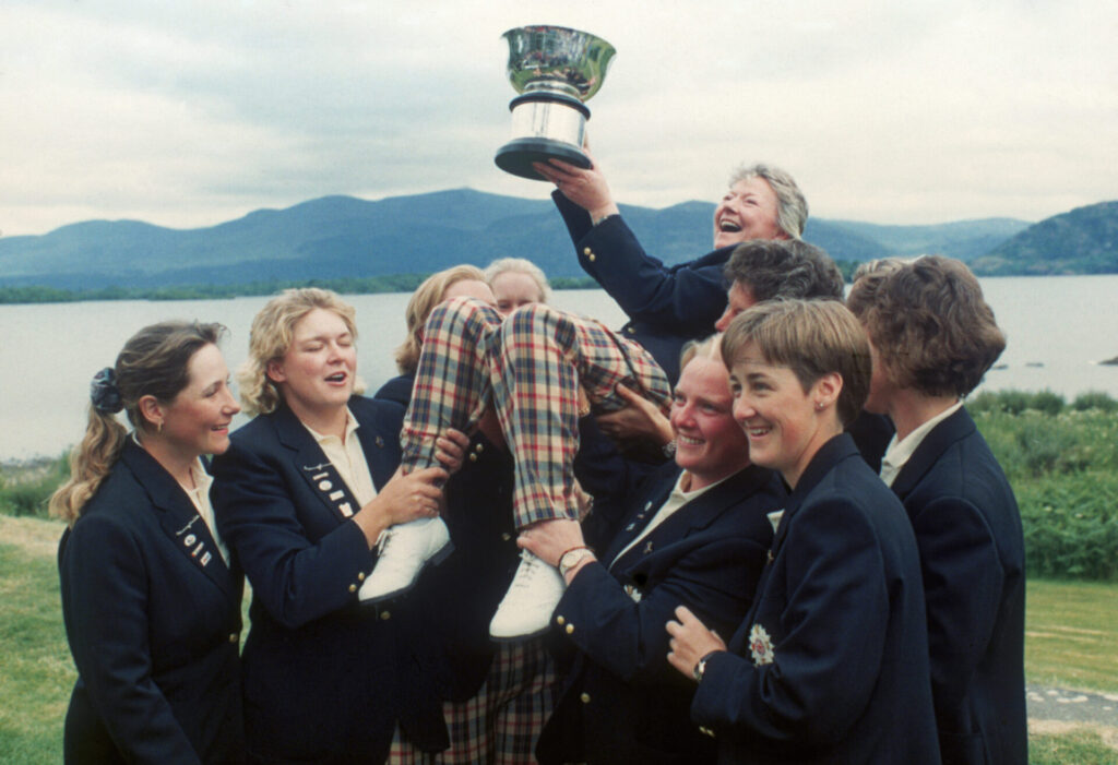 Maureen Madill (Portstewart) – with McKenna was the only team member who played on both European wins in 1979 and 1983. A British and Irish Amateur champion, Mo also played professionally before becoming a calm and knowledgeable TV commentator for the BBC.