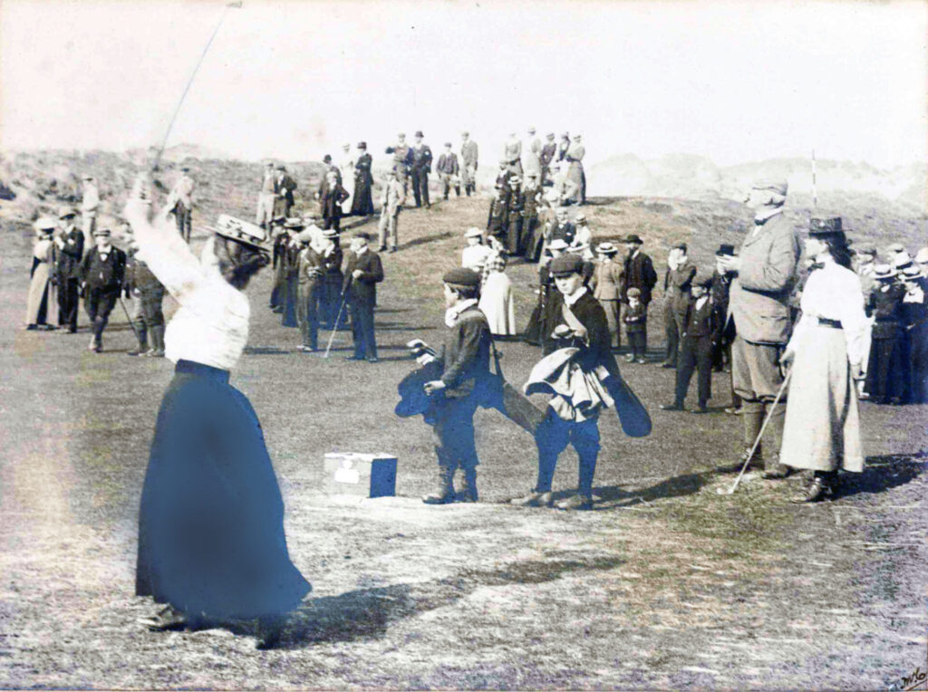 Missionary-style, the Ladies Golf Union in England brought the British Women’s Championship to Portrush in 1895. Among the entrants were a local member, Mrs Emily Hezlet and her 12-years old daughter, May.