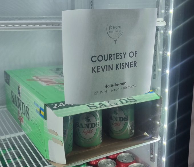 No sooner had Kisner completed his round and a case of Sands Light beer appeared in the media centre fridge and with a note to say it was with the compliments of Kisner.