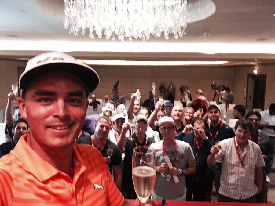 “I guess it’s almost become a little bit of a tradition now,” said Fowler of the bubbly. “Got to celebrate a win. No better place to start than with all you guys.”