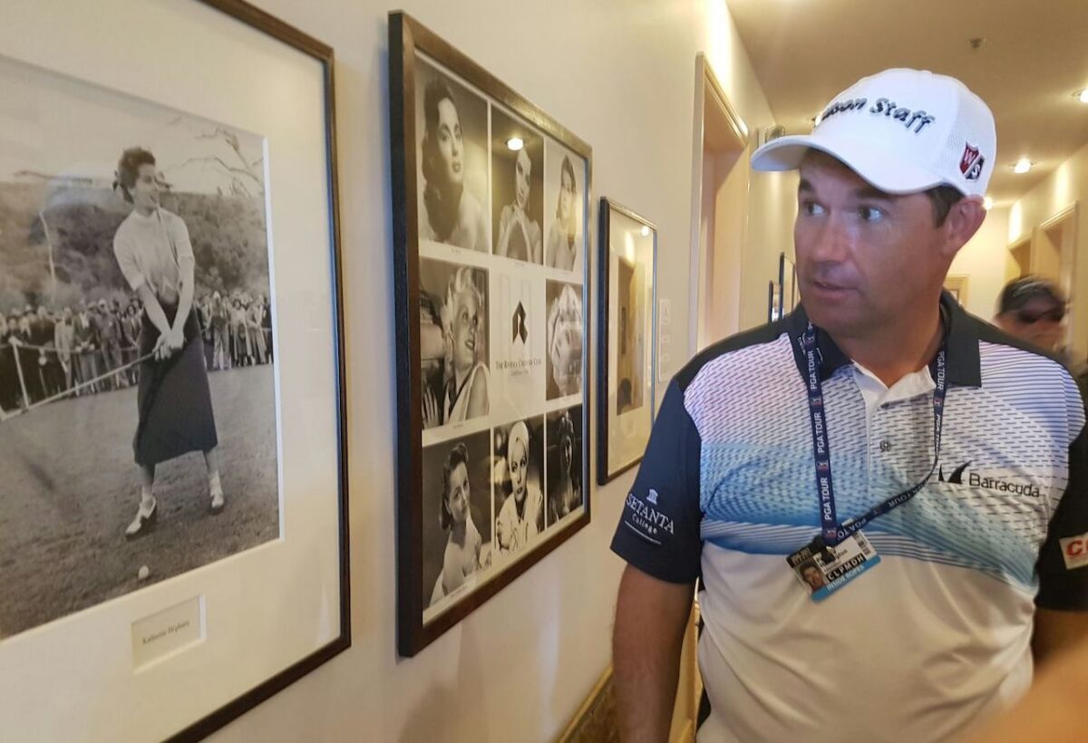 As we chatted with Harrington he was leaning up against a wall in the ladies locker-room and there is a stunning photograph of Katherine Hepburn, a winner of four ‘Best Actress’ Academy awards. Hepburn is in golf attire and holding a club. Harrington stopped the conversation and pointed to the photograph and said: “What do you like about that photograph?”