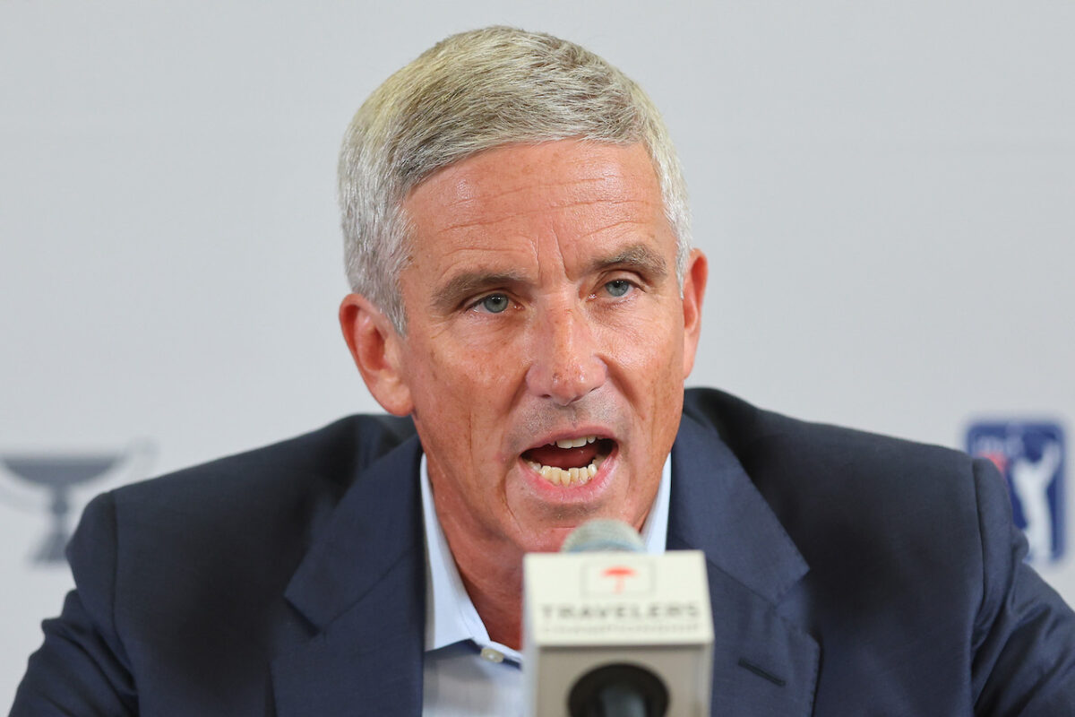 Get this. I just got a press release from some guy claiming to be PGA Tour Commissioner Jay Monahan. He’s patting himself on the back and lauding a momentous day for men’s pro golf as the PGA and DP World Tours partner with the Public Investment Fund of Saudi Arabia. You know, the guys who fund LIV Golf.
