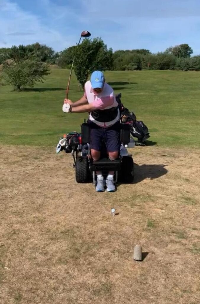 “Using upper body strength I can just get into it, strap myself in. My house, I live 600 yards away from the golf course. I just drive up the road, onto the golf course and there I am playing.”