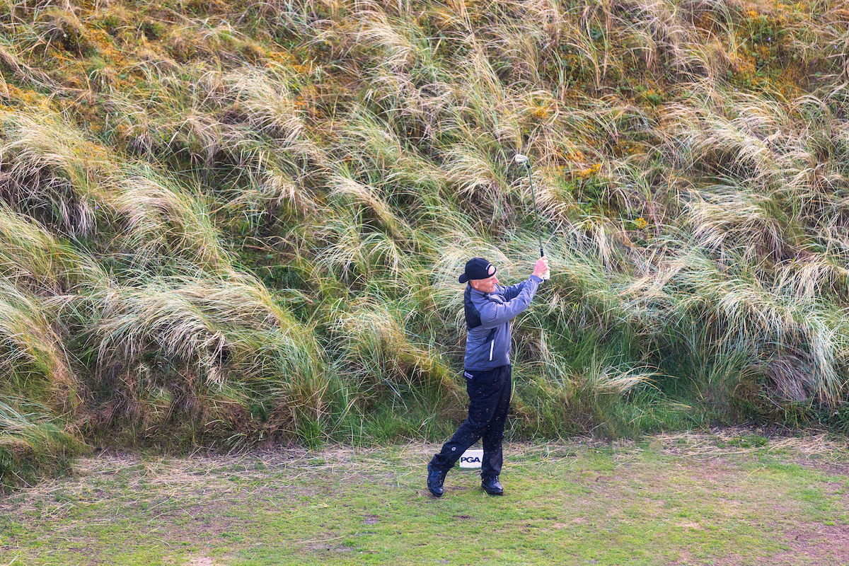 “It was brutally tough, a soon as you go off and maybe out of the way and you get the ball going somehow it’s maybe a lost ball. Before play was suspended I had just made a nine on the 13th so I found it pretty tough coming in. Just trying to judge what is going to happen with the ball is brutal because there are so many dunes and it’s so hard to know if the wind is going to hit the ball or not.