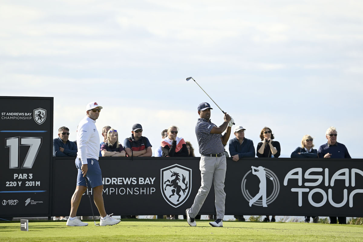Meanwhile, Scottish pro John Paterson was presented with a ceremonial flag to commemorate hitting the opening tee shot in this historic inaugural Asian Tour St. Andrews Bay Championship.