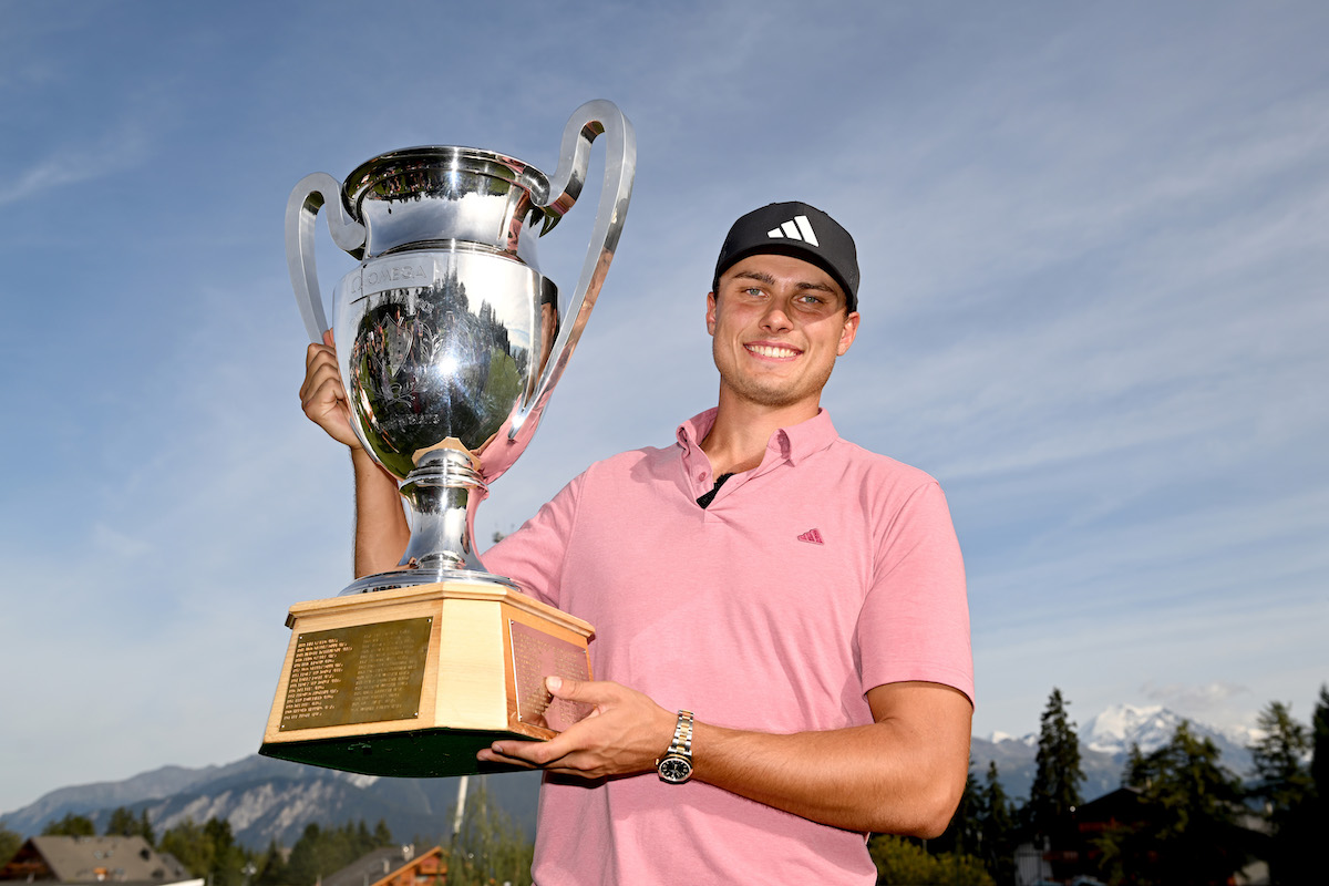 The former World Amateur Number One confirmed his status as one of golf’s rising stars with a closing 64 at Crans-sur-Sierre to deny Matt Fitzpatrick a hat-trick of titles in the Swiss mountains.