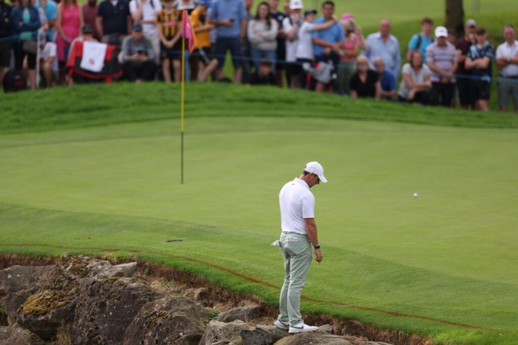 Unfortunately, however, by the end of the day, McIlroy would be sick of the water as he’d go on to visit it four times accruing penalty strokes and seeing his hopes of a second Irish Open victory at the K Club end in several watery graves.