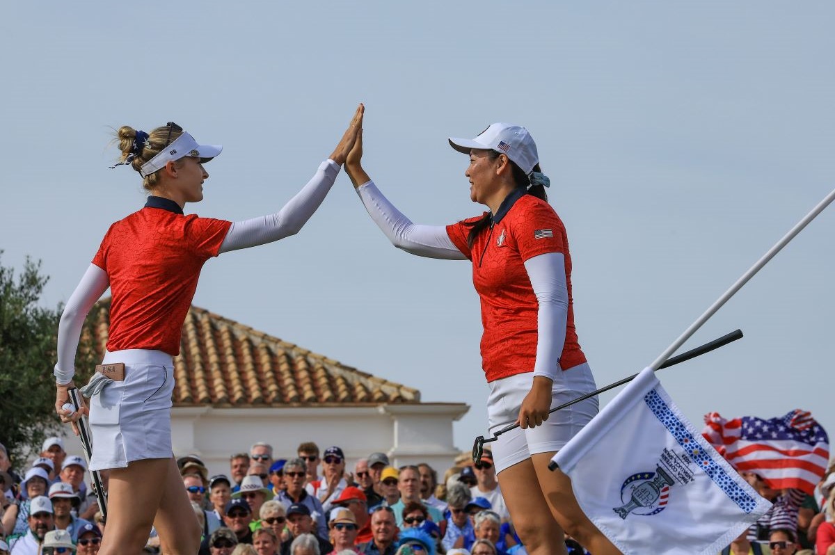 “Yeah, she’s a very tough competitor,” Korda said of Maguire afterwards having lost twice to her last time out. “I think playing against her in Solheim Cup or any match play event head-to-head, she brings a lot of fire to the table. So I’m happy that we got the W, that Allisen made the putt that I left her on 18, and that we have a lot of red on the board.”