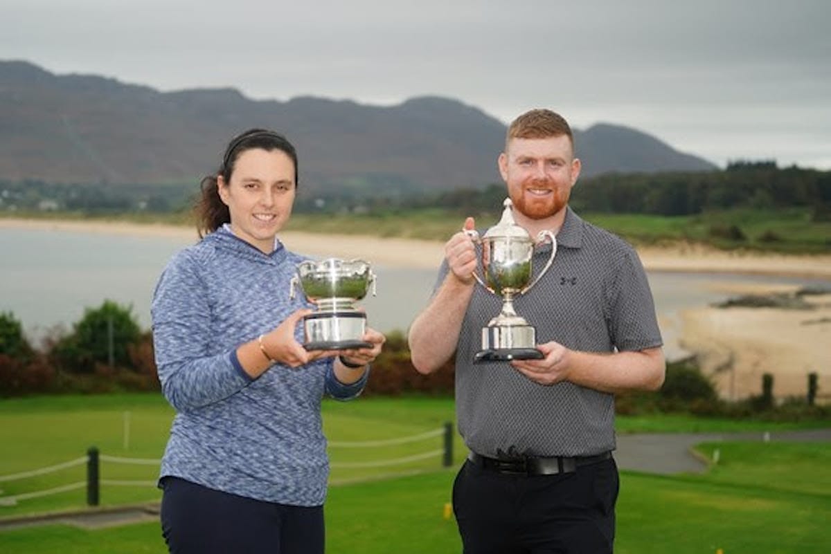 County Sligo golfer Ruairí O’Connor and Lahinch’s Aideen Walsh were crowned Irish Mid-Amateur champions at Portsalon on Sunday afternoon.