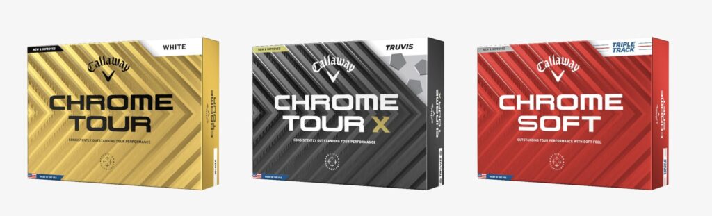 box says Chrome Tour X, this ball is very similar to the Chrome Soft X. As with the Chrome Tour, the X has an updated HyperFast Soft core for more ball speed. Callaway said this ball generated about 1.2 mph more ball speed in driver tests than the Chrome Soft X.