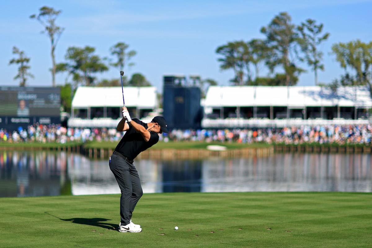 McIlroy carded a tournament best ten birdies on Thursday on his way to the summit on seven-under as he briefly flirted with Tom Hoge’s course record 63 after moving to eight-under through fifteen holes, before his tee shot on the 7th (his 16th) found a watery grave, which is when the drama ensued and overshadowed his early birdie burst.