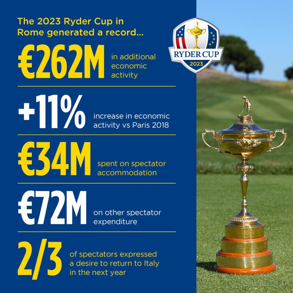 “From a sporting and fan engagement perspective, Rome 2023 has already gone down as one of the greatest Ryder Cup’s in history. We can now confidently conclude that the 2023 contest at Marco Simone also generated record financial rewards, providing a significant direct boost to the economy in Rome and in Italy.