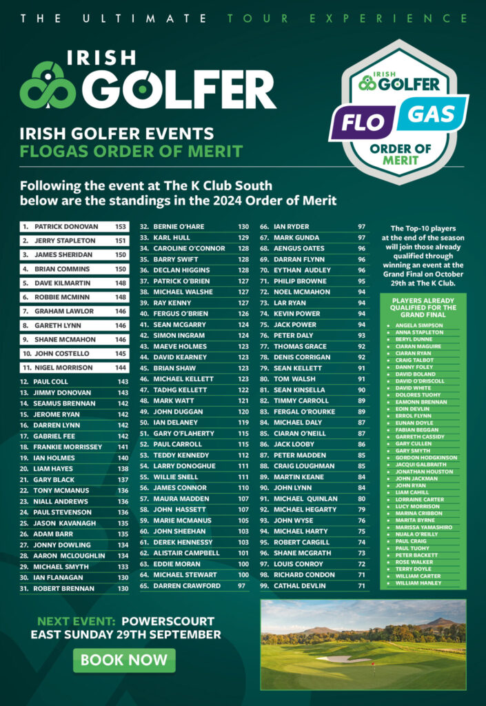 There are still opportunities to qualify though and as always your best four Irish Golfer Events scores in the season count towards the order of merit and the top-10 players not already qualified (through winning a category at an event), go through to the Grand Final at the K Club Palmer North Course in October.