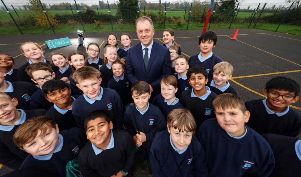 Thanks to funding from the Irish government, supported by Sport Ireland, Golf Ireland have employed a team of Golf in the Community Officers to deliver these initiatives. The five officers were present at Scoil Bhríde in Kilbride, County Meath along with Minister Byrne and Golf Ireland CEO Mark Kennelly.