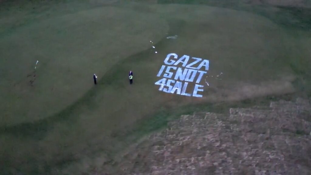 Palestine Action, a self-described “direct-action network,” proudly admitted to orchestrating the overnight assault on the Open Championship venue. The attack left the clubhouse drenched in red paint, several greens excavated, and the phrase “GAZA IS NOT FOR SALE” scrawled across the grass in bold, three-metre-high white letters.
