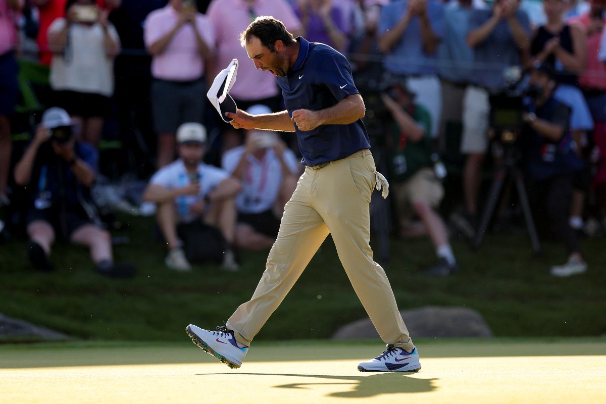 Scottie Scheffler, after holing a birdie putt on 18 on Saturday to make his lead even bigger: “F— yeah, baby.”
