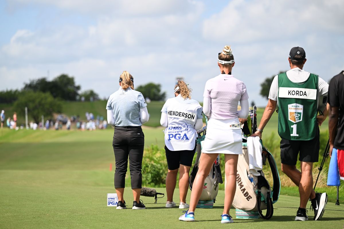 That long day was just beginning at Fields Ranch East at PGA Frisco. With winds gusting up to 30 mph and the Texas heat baking the firm greens, play slowed to a crawl at the year’s third major. Korda and her playing partner, Brooke Henderson, played their first nine holes in three hours and ten minutes.
