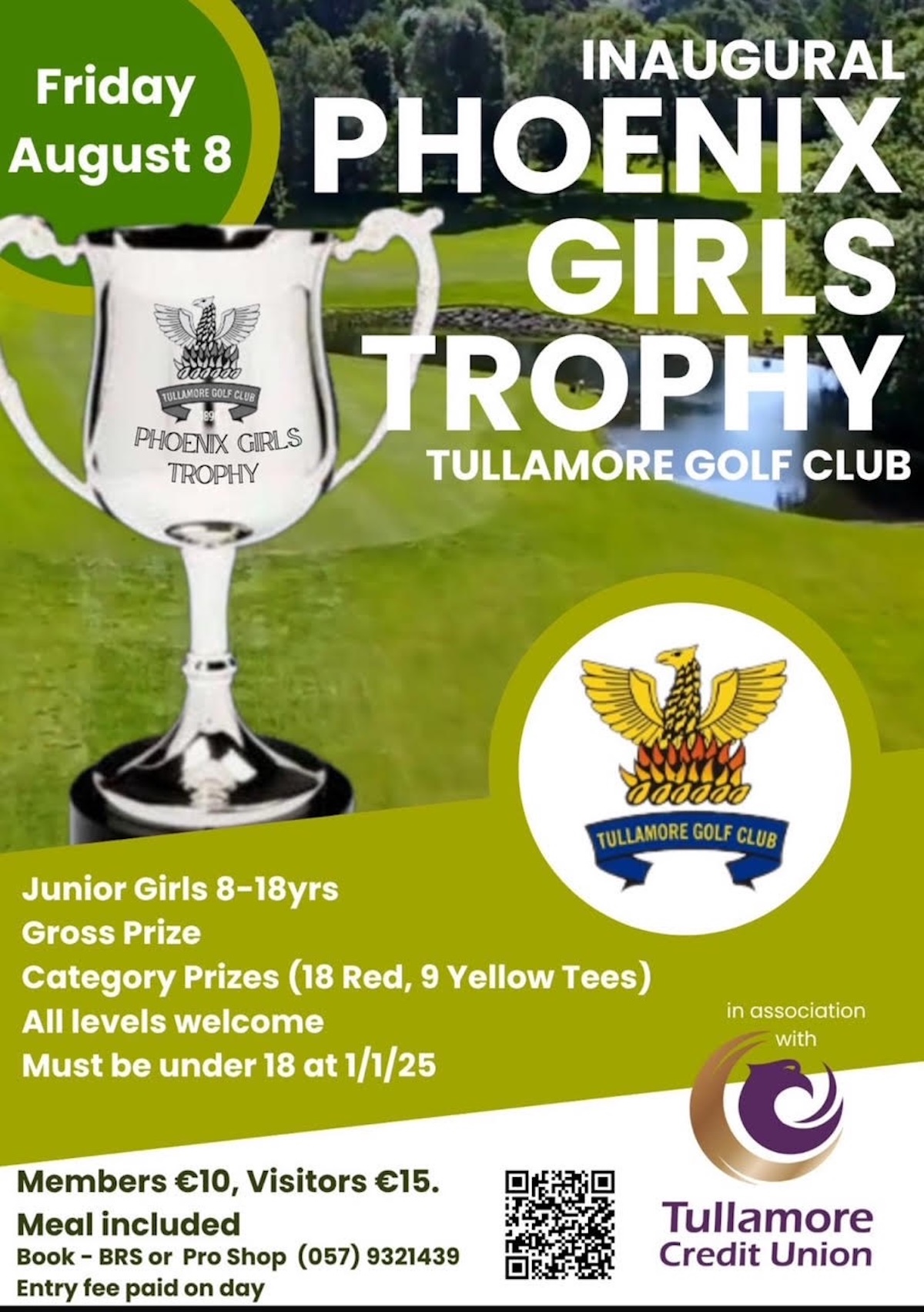 Tullamore Golf Club will play host to the inaugural Phoenix Girls Trophy on August 8th in association with Tullamore Credit Union.