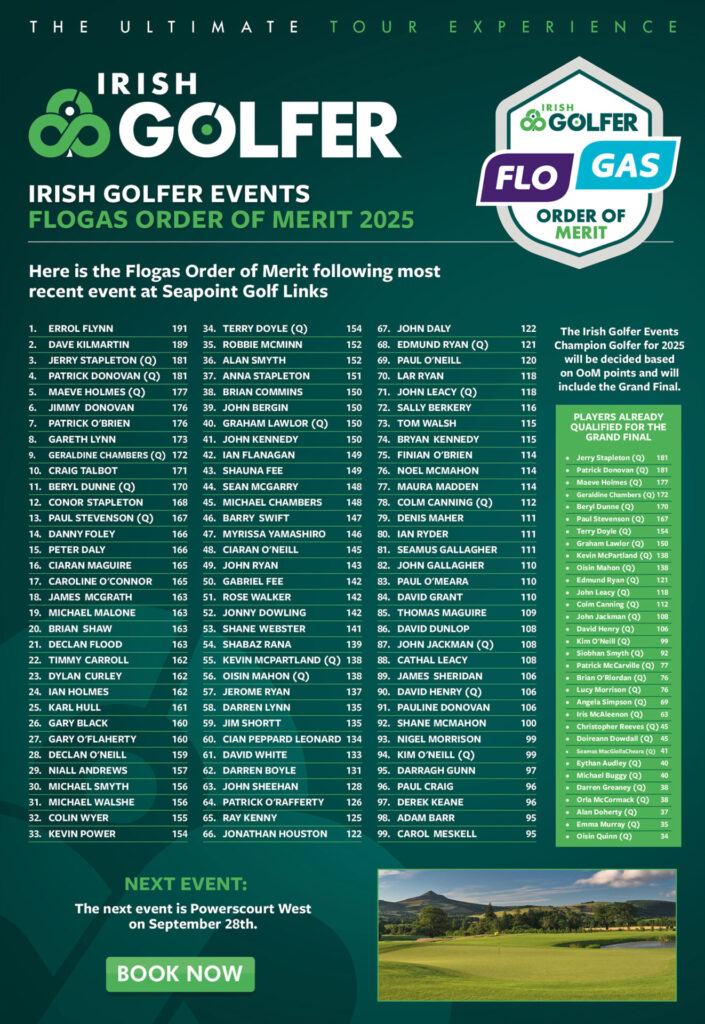 The Flogas Order of Merit for the Irish Golfer Events Series 2025 is now updated following the most recent event at Seapoint Golf Links.