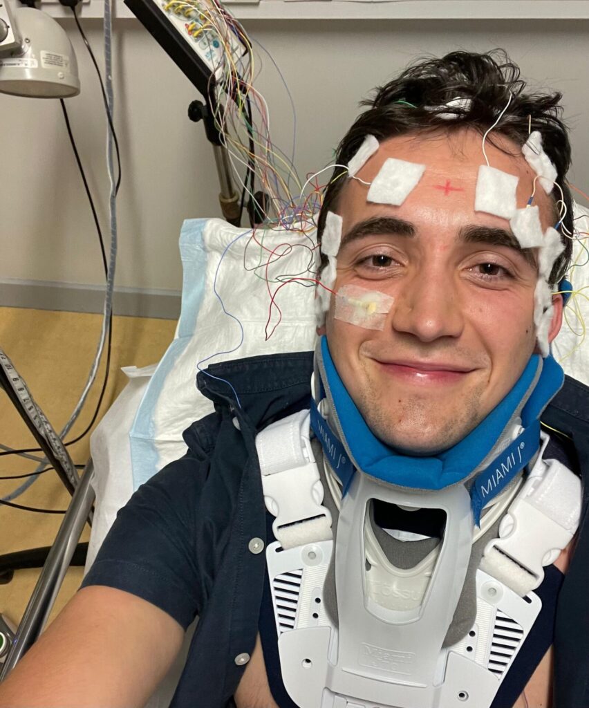 “I had no clue what happened and reached up and pulled the cord. The nurses came and got me into a bed, and over the coming days we’d done scans, X-rays and CTs.