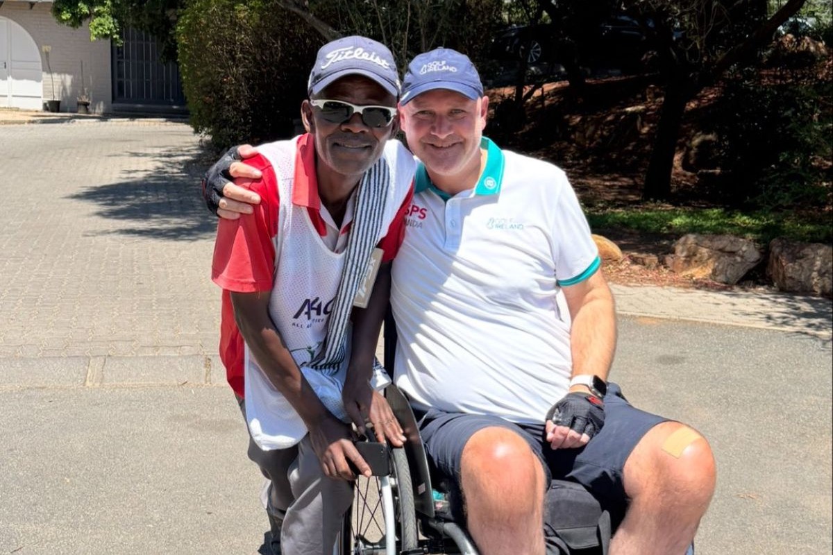 Paralysed from the waist down after contracting cancer over a decade ago, the former Head Professional at Rush Golf Club now plays using a ParaGolfer that holds him upright and allows him to swing the club.